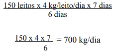Tomando-se como exemplo um hospital que consome 6 kg de roupa por leito/dia, ou seja, um hospital que troca diariamente a roupa dos leitos, obtém-se o seguinte resultado, considerando-se que este hospital possua 200 leitos: