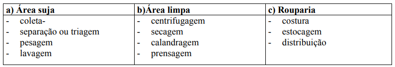 - área suja (considerada contaminada) - utilizada para separação e lavagem;
