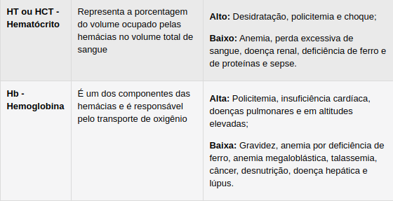 - Alterações nas hemácias indicam viscosidade excessiva do sangue, se elas estiverem presentes em grande quantidade, ou anemias, se o número de glóbulos vermelhos for baixo.