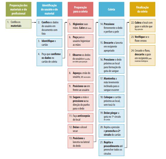 11 Diagrama do passo a passo da coleta de sangue por punção digital em papel filtro: