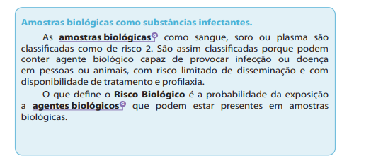 - Recipiente primário: é composto pelo tubo com a amostra, com tampa que permita a completa vedação do conteúdo. Deve ser de material resistente a impactos, sem rachaduras ou trincas e devidamente identificado. Ao ser transportado deve ser envolvido em material que tenha capacidade de absorver todo o seu conteúdo em caso de quebra.