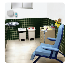 - Cadeira com braçadeira regulável ou suporte para braço. Recomenda-se que a cadeira tenha apoio lateral para os braços, pois se o usuário desmaiar sua queda será evitada;