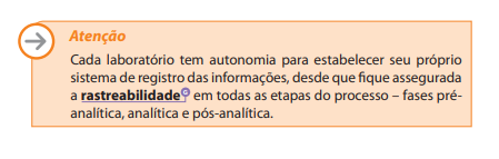 A etapa pré-analítica abrange a recepção, a identificação, a preparação do usuário, a coleta, o armazenamento e o transporte das amostras até o laboratório.