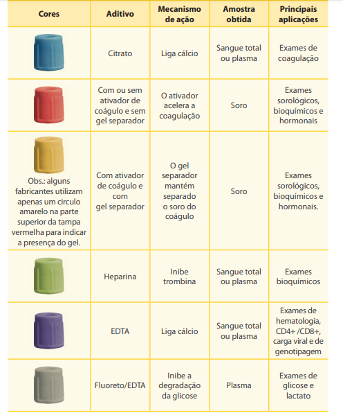 A escolha dos tubos utilizados na coleta de amostras com seringa e agulha deve respeitar as seguintes recomendações:
