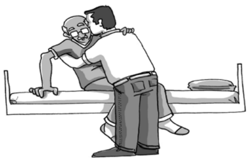 - Se a pessoa tem força nos braços: oriente a pessoa cuidada a sustentar o peso do corpo ora sobre uma nádega, ora sobre a outra.