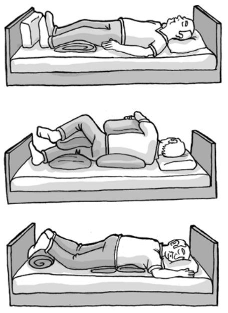 - Proteja os locais do corpo onde os ossos são mais salientes com travesseiros, almofadas, lençóis ou toalhas dobradas em forma de rolo, entre outros.