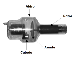 O tubo (ampola) é composta por envoltório normalmente constituído de vidro pirex, resistente ao calor, lacrado, e com vácuo formado no seu interior onde são encontrados o cátodo (polo negativo), posicionados a determinada distância um do outro e soldados no corpo do tubo em posição axial oposta.