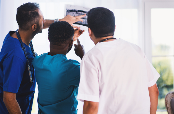 Quando o aparelho é ligado, o gerador de raios X produz um feixe de radiação. Essas partículas saem pela abertura do equipamento e são irradiadas até atingirem a parte do corpo que será examinada.