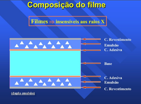 Os filmes utilizados nos estudos radiológicos apresentam aproximadamente 10 nm (nanômetros) de espessura e compreendem quatro componentes básicos:
