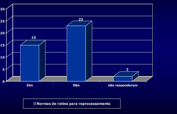 Distribui Distribuição dos hospitais (Nº 40) que possuem normas de 40) que possuem normas de rotina para reprocessamento de artigos de uso rotina para reprocessamento de artigos de uso único realizado no Semin realizado no Seminário da APECIH , SP rio da APECIH , SP- outubro/2003 outubro/2003: