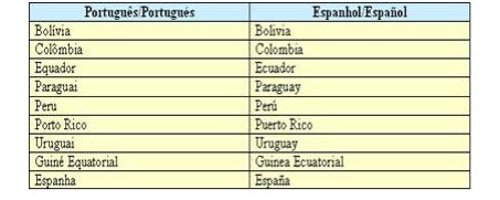 No Brasil, a proximidade com as fronteiras de países hispanofalantes e o aumento das relações comerciais impulsionadas pelo MERCOSUL, levaram o governo brasileiro a introduzir a língua espanhola como oferta obrigatória nas escolas, através da Lei nº 11.161, em 05 de agosto de 2005. Os nomes de alguns países quando escritos na língua espanhola podem sofrer pequenas modificações, para chamar a atenção fizemos a tabela abaixo: