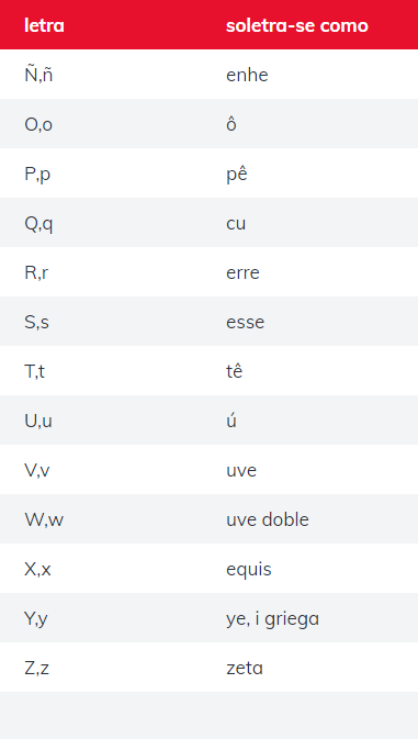 A seguir iremos falar sobre algumas letras do alfabeto, do ponto de vista do espanhol.