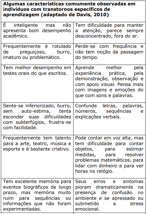 Em outras palavras, poderá ser mais atuante no planejamento de suas futuras ações na vida adulta, sem sentir-se vencido pelos seus “limites”. Estima-se que 6 % da população mundial possua algum tipo de transtorno específico de aprendizagem . Esses transtornos persistentes manifestam-se muito cedo na vida e não decorrem da falta de oportunidade de aprender, de deficiência intelectual ou sensorial ou de doenças adquiridas. Quase sempre, resultam em muito sofrimento para o indivíduo e sua família. Se não houver uma intervenção personalizada e de longo prazo, a defasagem de desempenho na escola aumenta com o passar dos anos, resultando em prejuízos pessoais irreparáveis tais como: abandono escolar, transtornos psico-afetivos, inadaptação social e subemprego, para citar alguns. Estatísticas americanas indicam que 40% dos jovens com TEA não concluem o ensino médio naquele país.