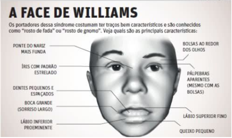 Síndrome de Williams é uma desordem no cromossomo 7 que atinge crianças de ambos os sexos. Desde o primeiro ano de vida, essas crianças costumam irritar-se com facilidade, boa parte tem hipersensibilidade auditiva e demonstram dificuldades para se alimentar.