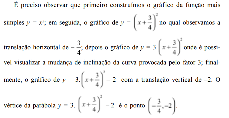 Como vimos, o gráfico de y = x2 é uma parábola cujo vértice é o ponto (0,0), enquanto que o gráfico de