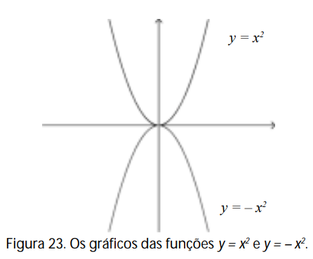 Se o coeficiente a é negativo, a situação é, de certa maneira, semelhante. Examinemos inicialmente o caso em que a = –1. O gráfico de y = –x2 é a reflexão do gráfico de y = x2 com relação ao eixo horizontal. Por quê?
