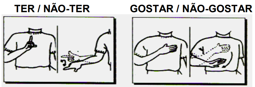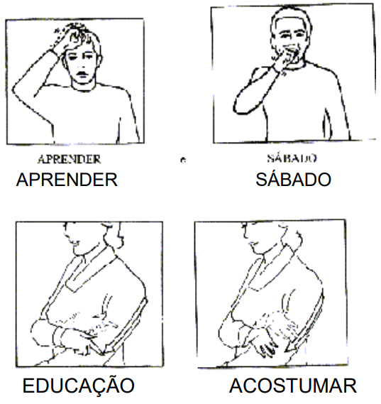 Como nas línguas orais, um sinal pode se distinguir de outro por apenas um traço distintivo. Assim, na LIBRAS, basta alterarmos a configuração de mãos de um determinado sinal, e manter os demais parâmetros, para termos outro item lexical. Observe a representação dos itens lexicais: