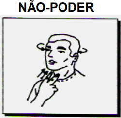 b) realizando-se um movimento negativo com a cabeça, simultaneamente à ação que está sendo negada.