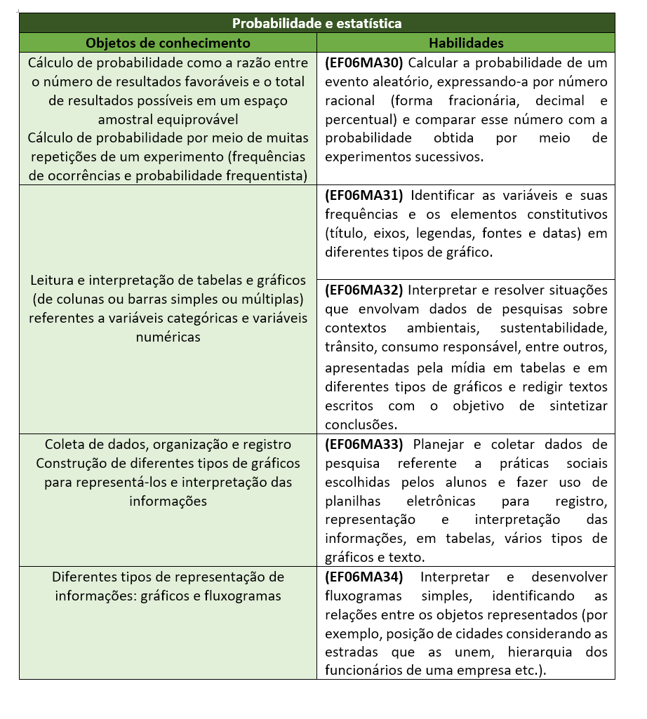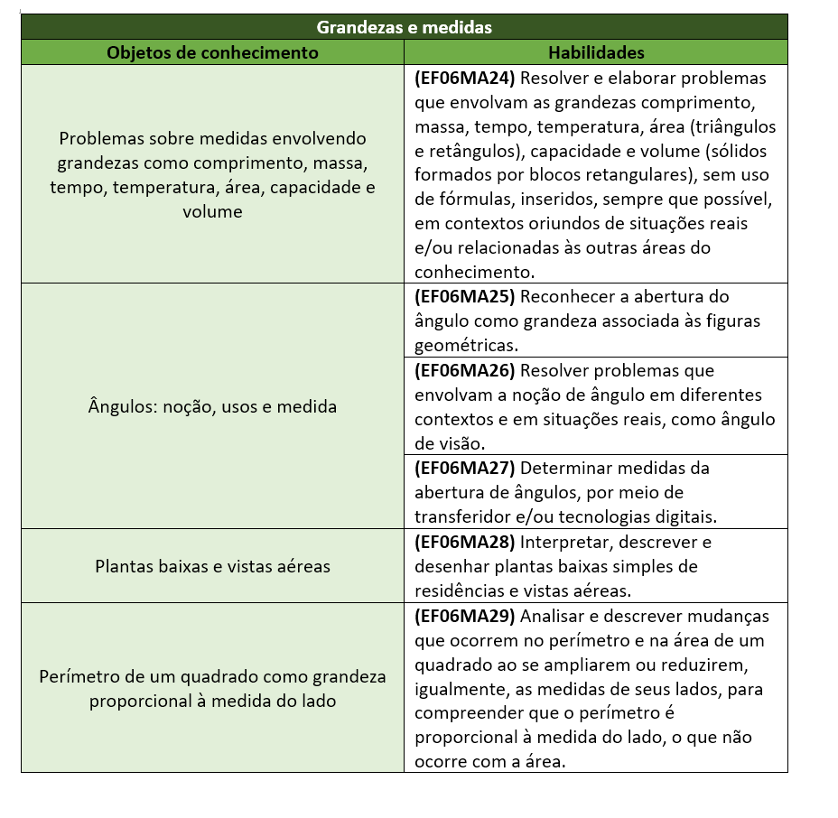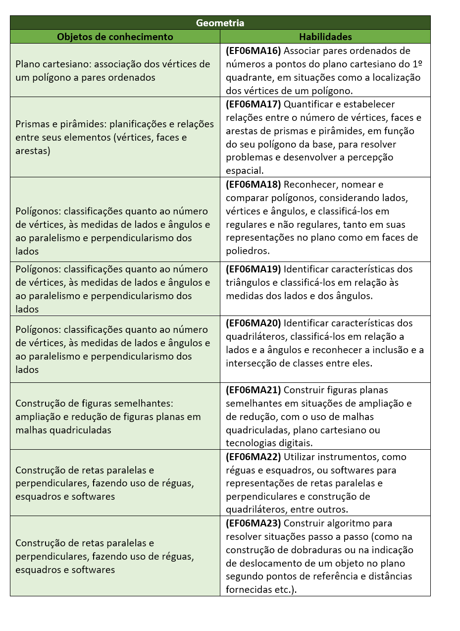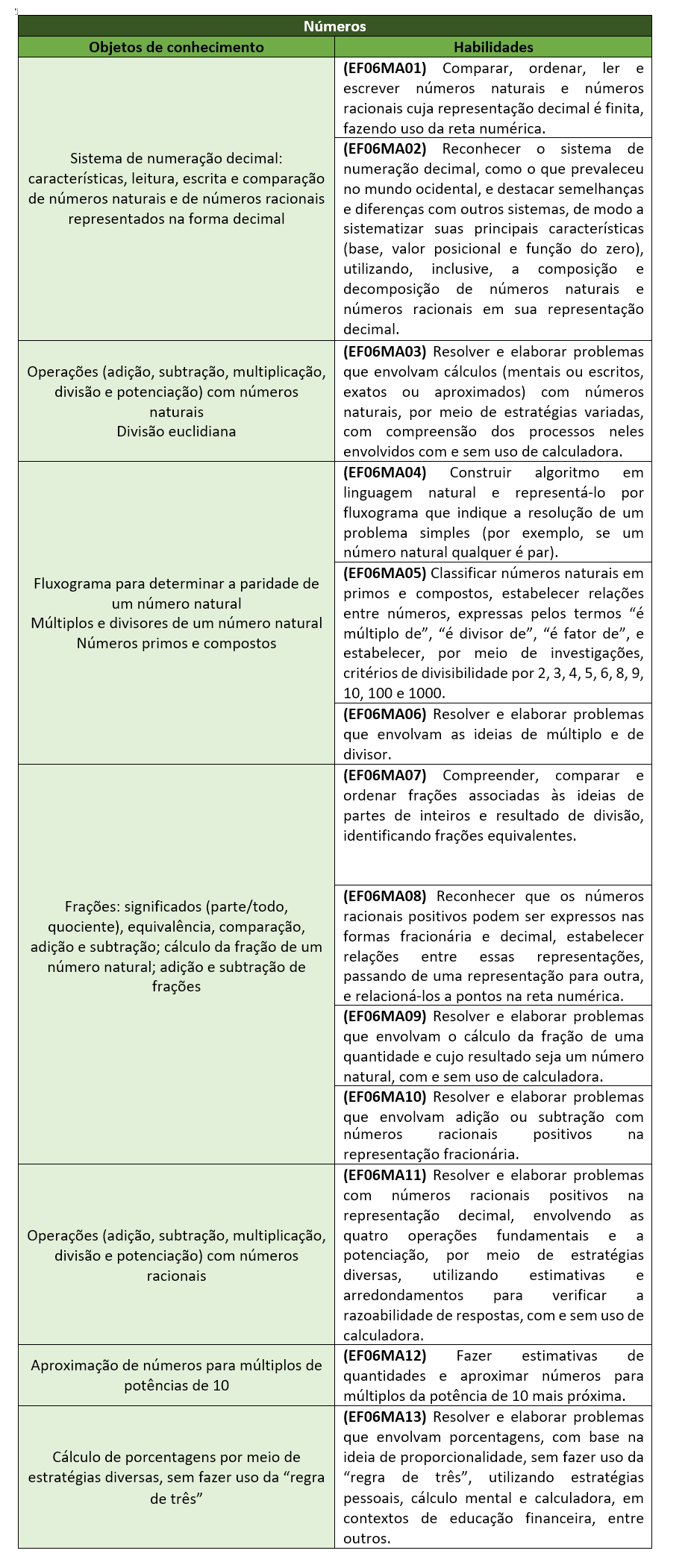 3 Objetos de conhecimento e habilidades para o 6º ano: