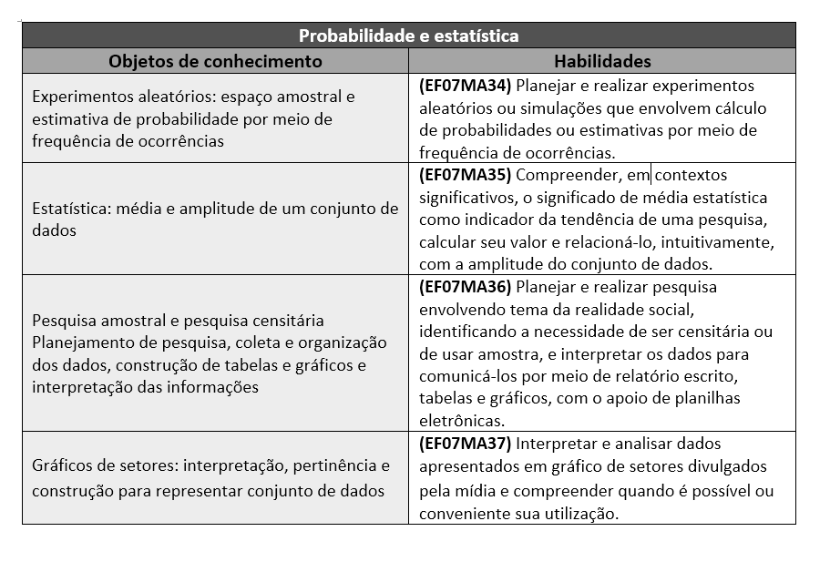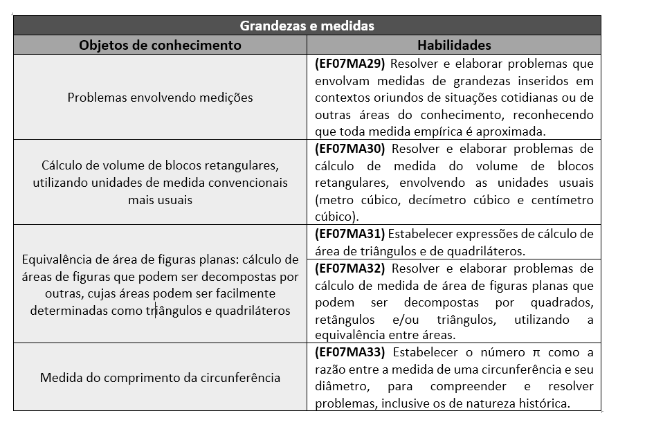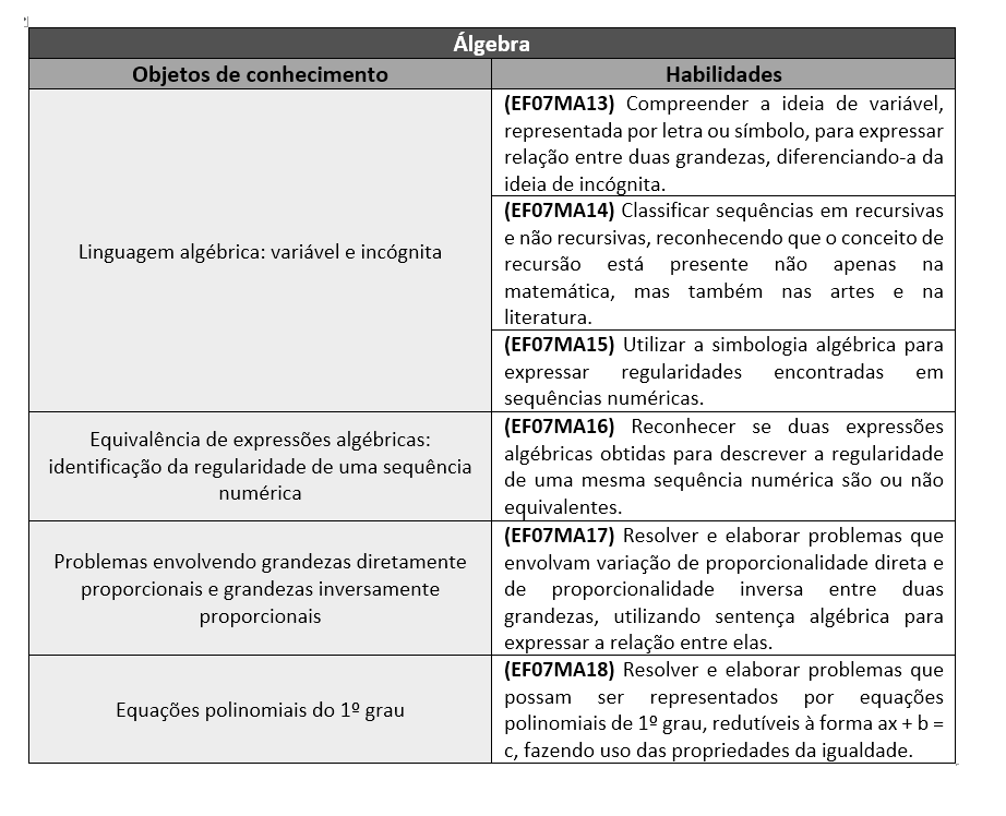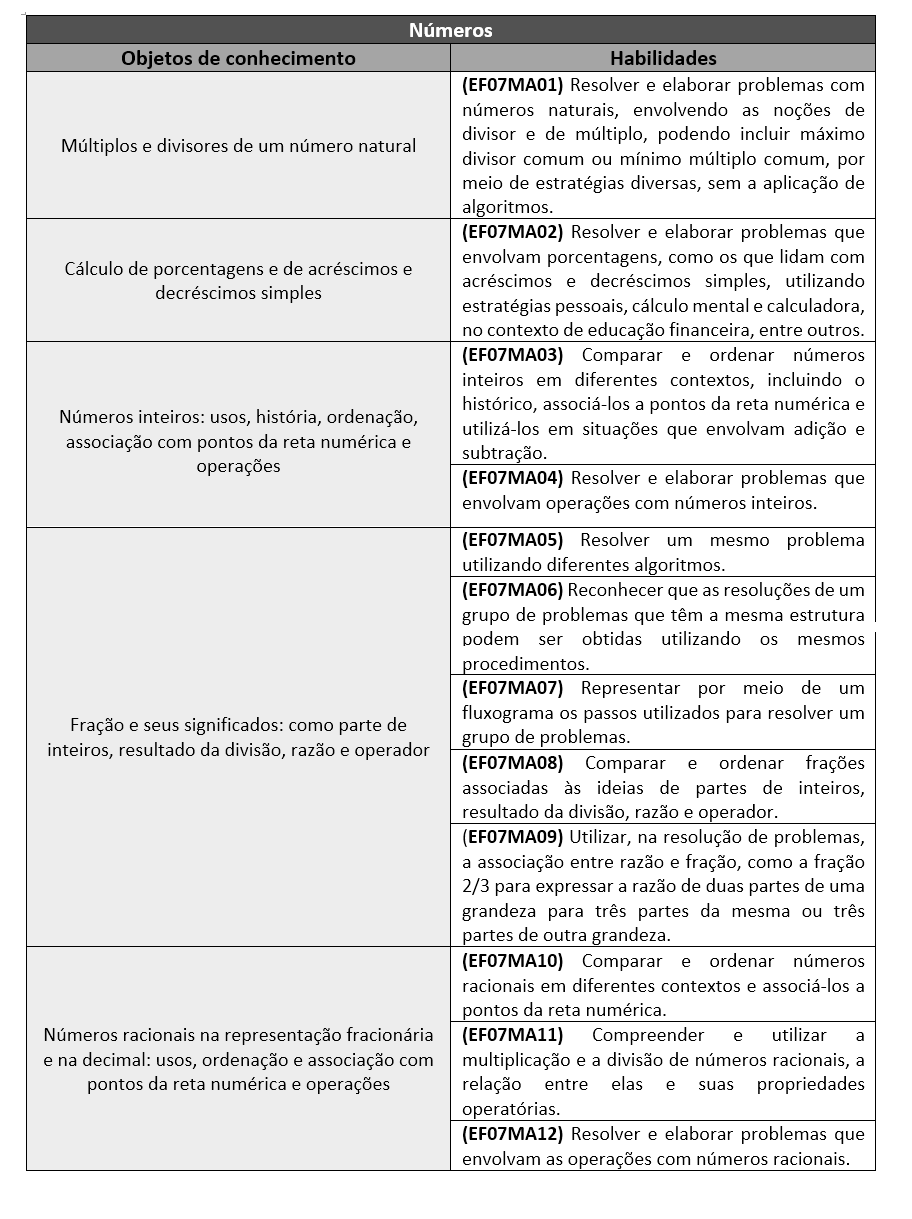 4 Objetos de conhecimento e habilidades para o 7º ano: