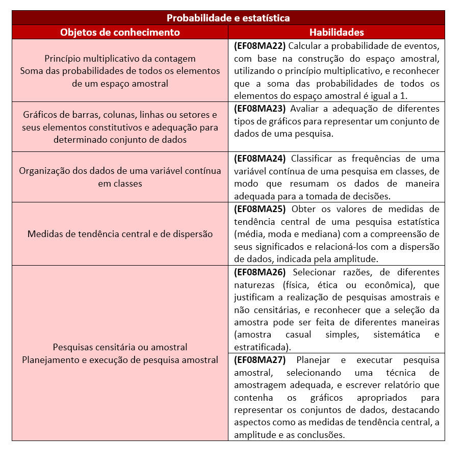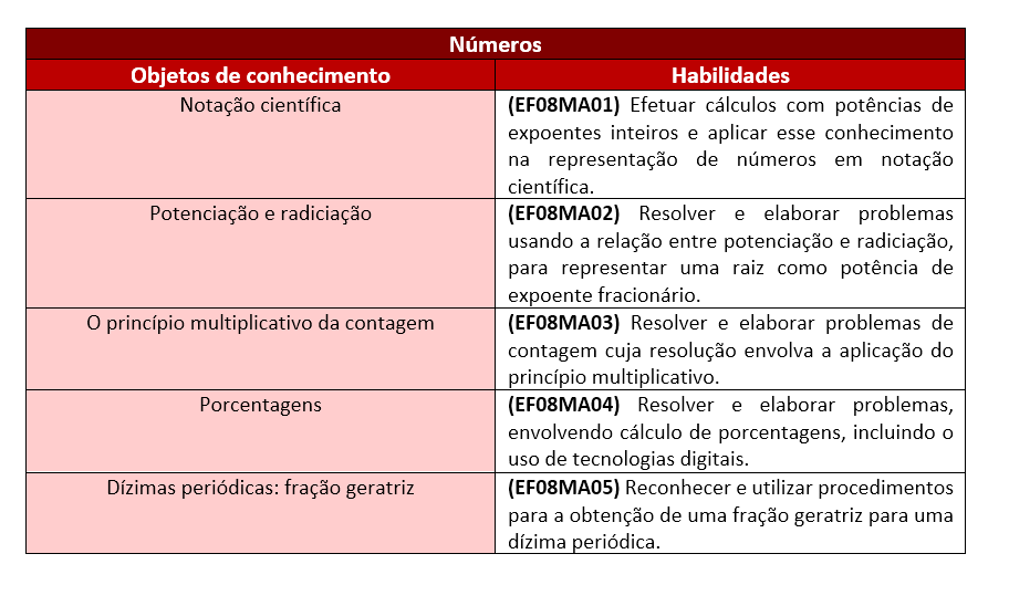 5 Objetos de conhecimento e habilidades para o 8º ano: