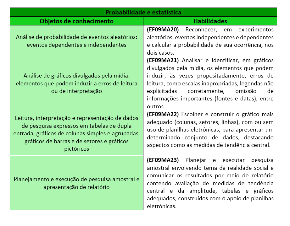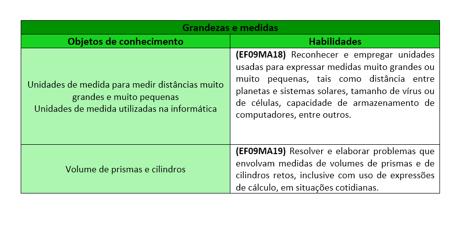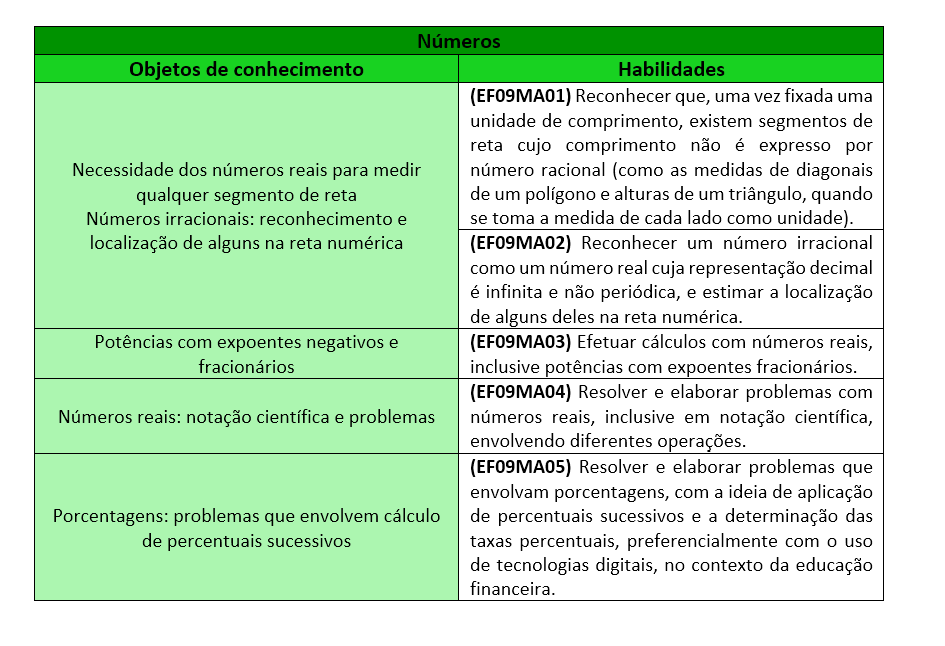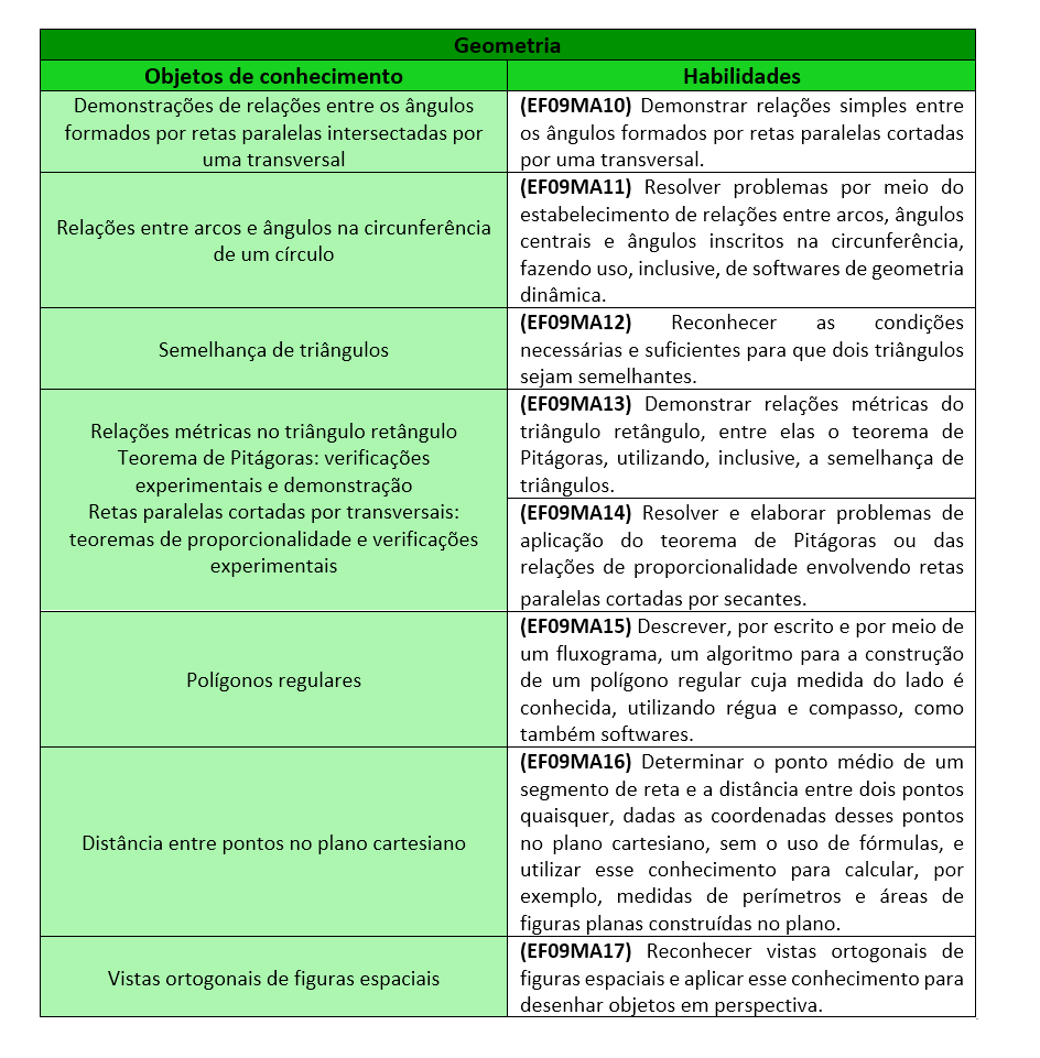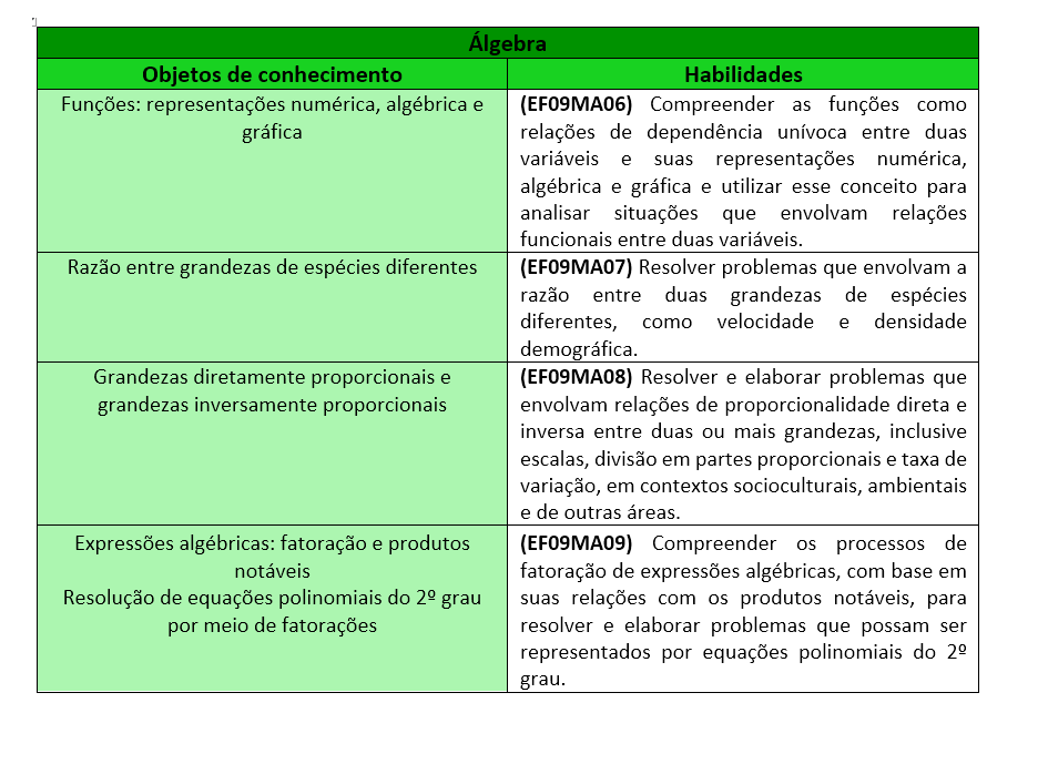 6 Objetos de conhecimento e habilidades para o 9º ano: