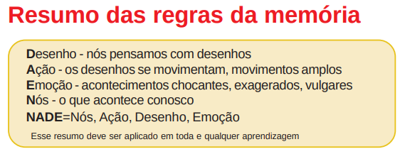 Nós pensamos com desenhos e quanto mais vivo for o desenho, quanto mais amplo, quanto mais ação houver, melhor será nossa capacidade de memorização, pois o fluxo elétrico é maior e quanto maior, ajuda-nos a lembrar melhor