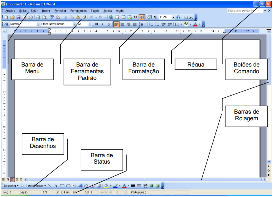 Barra de títulos: É o topo da página, local onde fica o nome do aplicativo aberto, o nome do arquivo que esta sendo usado e também sessões do Windows os botões maximizar, minimizar e fechar e o ícone de controle da janela;