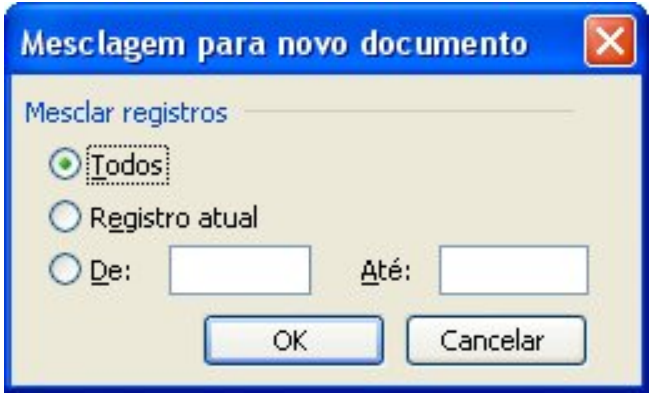 Escolha Todos para exibir ou imprimir todos os destinatários. Registro atual imprime somente o destinatário ativo. Na terceira opção, escolha o número dos destinatários, por exemplo, de 5 até 10. Salve os documentos, se necessário.