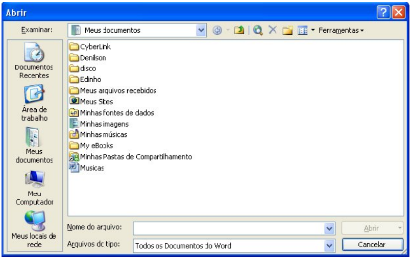 O Microsoft Word também pode abrir um documento já existente no sistema, ou seja, criado por outro usuário. Para abrir um documento posicione o mouse no item Arquivo (que está localizado na Barra de Menus, abaixo da Barra de Títulos) logo após ter dado esse último evento aparecerá um menu com várias opções com o mouse (sempre) clique na opção Abrir. Logo após dê um clique duplo no arquivo desejado e pronto.