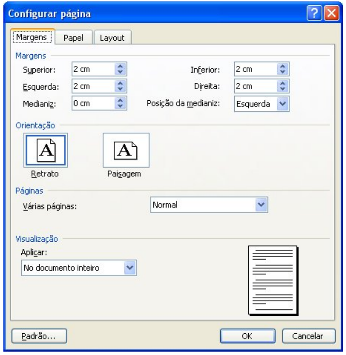 Para ativar a Caixa do Comando Configurar Página clique no menu Arquivo e logo após em “configurar página”. A Guia Margens permite ao usuário mudar o tamanho das margens laterais (esquerda, direita, superior e inferior).