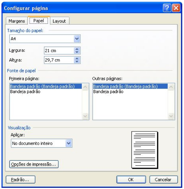 A Guia Papel permite ao usuário mudar o tamanho do papel usado para impressão do documento.