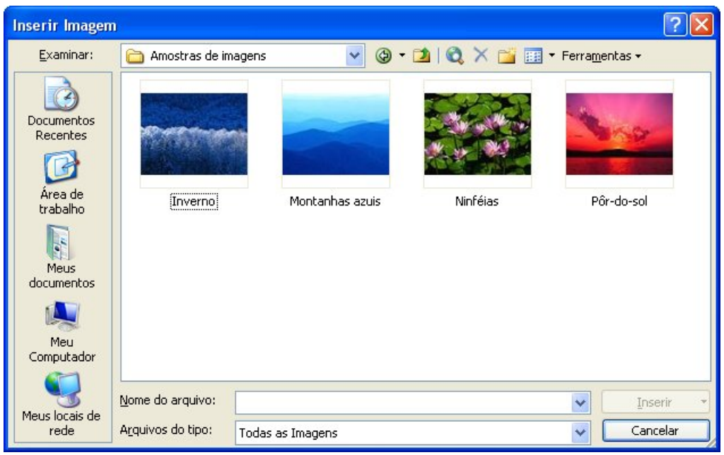 Você pode também inserir imagens que estejam salvas no computador. Para exibir a caixa de diálogo abaixo, você tem duas opções: