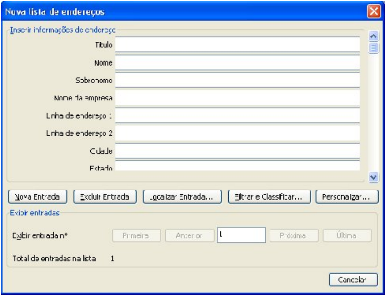 Esta é a nova janela que será exibida. A partir desta janela, já podemos iniciar a digitação dos dados de nossos contatos. Porém, caso exista alguns campos que você não deseja na lista ou mesmo campos que não estejam na lista, você pode clicar no botão Personalizar para alterar essa relação de campos.