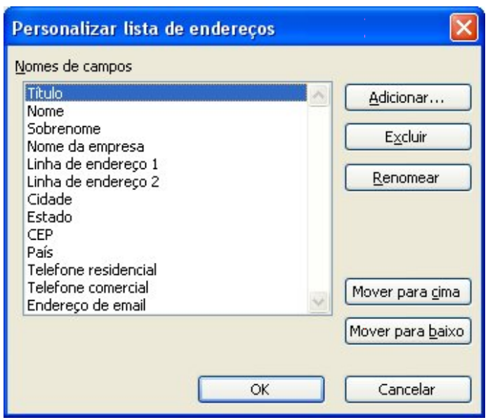 Para excluir campos, selecione-os na lista e depois clique no botão Excluir. Agora podemos adicionar um novo campo, clicando no botão Adicionar. Para mudar um campo de nome, clique no botão Renomear. Ao terminar de modificar seus campos, clique no botão OK.