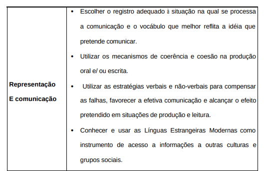 Assim sendo, os PCNs (1999, p.153), estabelece as competências e habilidades a serem desenvolvidas em Língua Estrangeira Moderna. veja tabela a seguir: