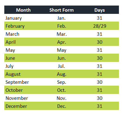 Meses do ano - Months of the year