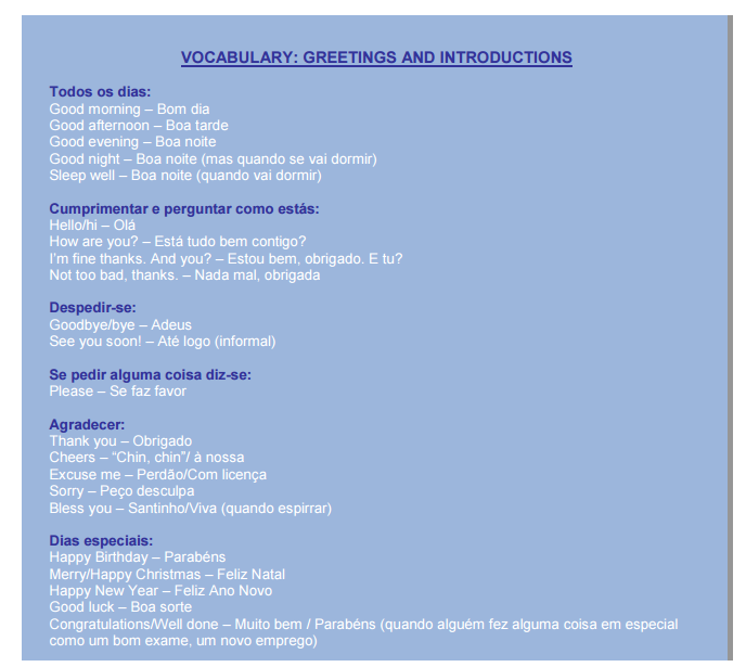 Cumprimentos - Greetings