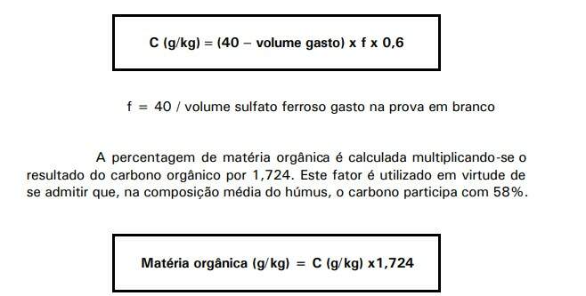 Para as amostras em que os 50ml da solução de dicromato de potássio são insuficientes para oxidar toda matéria orgânica, usar 0,25g de solo.