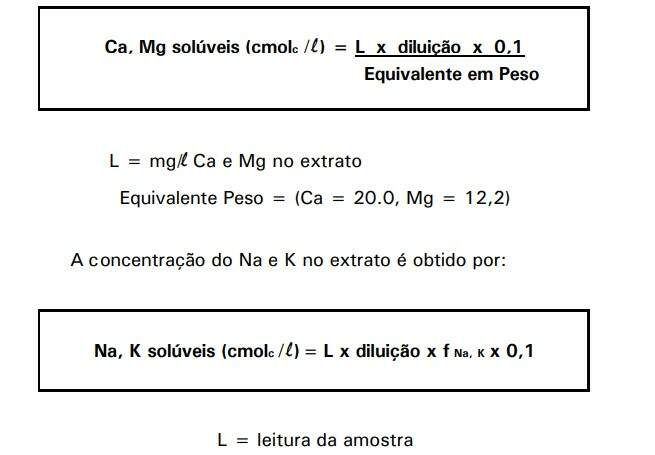 - Filtrar e pipetar alíquota do filtrado claro e dosar o Ca++ e o Mg++ pelo EAA. · Calcular a concentração do Ca++ e do Mg++ em cmolc /l.