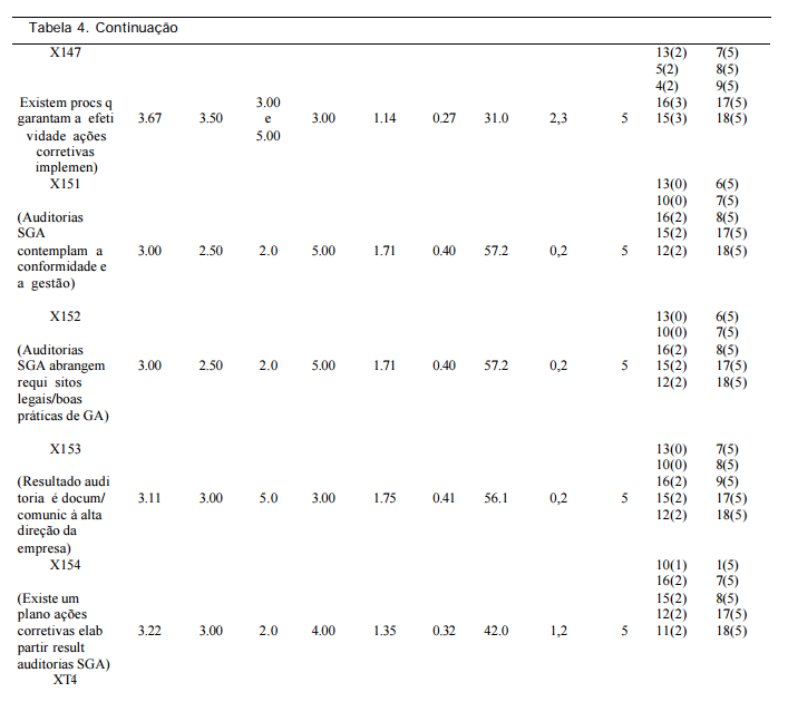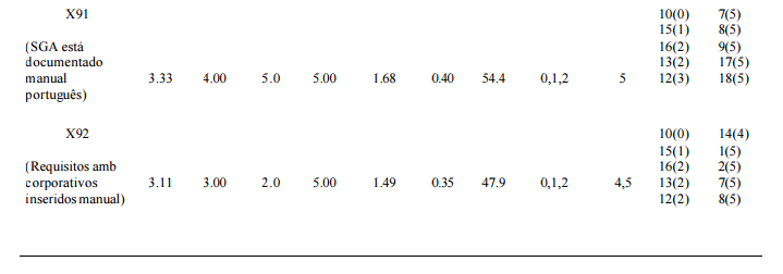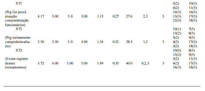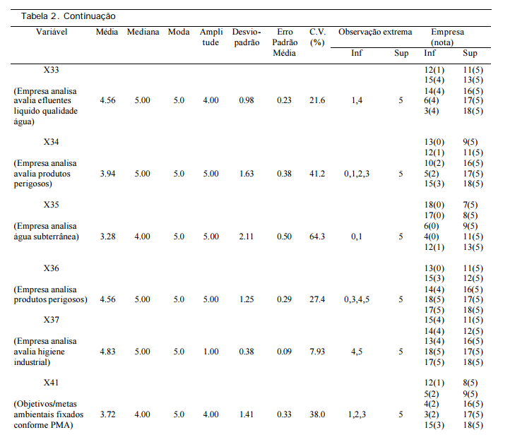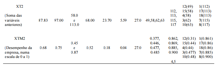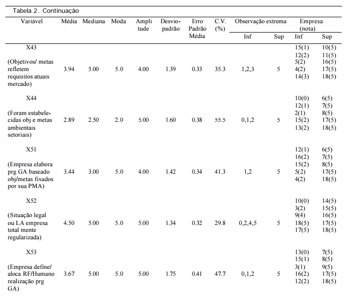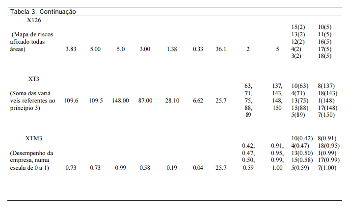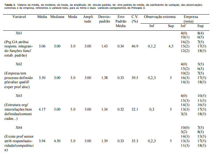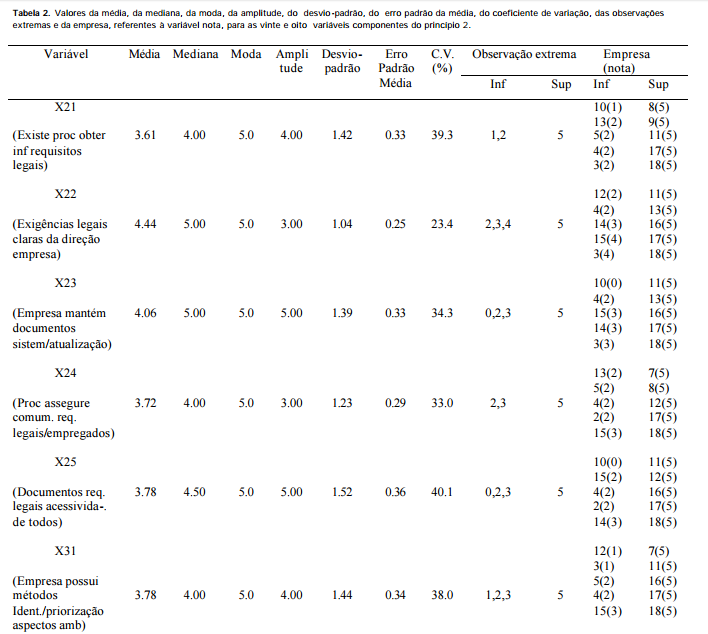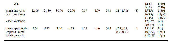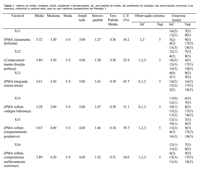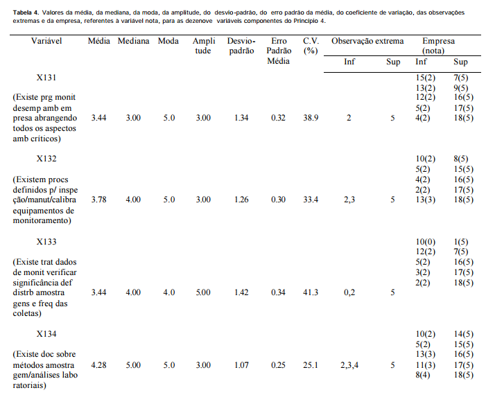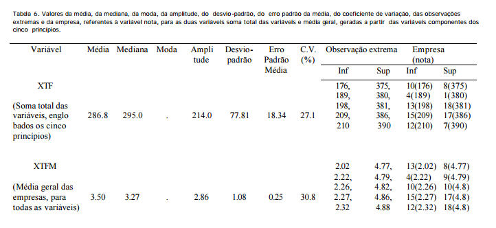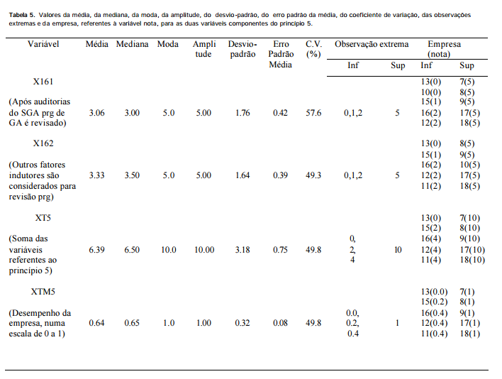 /* Este programa calcula as principais estatísticas básicas para cada uma das variáveis constantes dos cinco princípios do sistema de gestão ambiental. Calcula também o valor total do conjunto de variáveis de cada princípio (XTi) e o índice (XTMi) que reflete o desempenho médio do conjunto de empresas, para cada princípio considerado */;