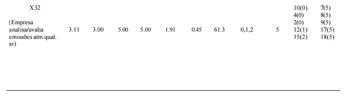 X32=’A empresa(EMP)analisa e avalia os impactos(IMP) referentes às emissões atmosféricas – qualidade do ar?’