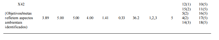 X42=’Os objetivos e as metas ambientais(AMB) da sua empresa(EMP)refletem os aspectos(ASP)ambientais(AMB)identificados e os seus impactos(IMP) significativos associados?’