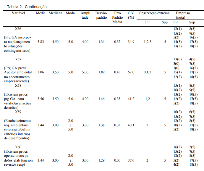 A segunda parte do trabalho apresenta e discute os resultados obtidos com base na aplicação de questionários junto à empresas da região de Campinas-SP. Os princípios definidos pela Série ISO 14.001 foram desdobrados em um conjunto de questões que permitiu averiguar quão próximas estão as empresas da adoção de um sistema de gestão ambiental.