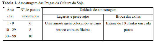 Como exemplo mostrado a seguir, de um plano convencional para amostragem de pragas de soja no Brasil.