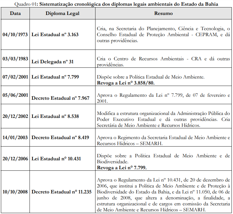 1 BREVE RETROSPECTIVA DO MODELO INSTITUCIONAL LEGAL DA GESTÃO AMBIENTAL NA BAHIA: