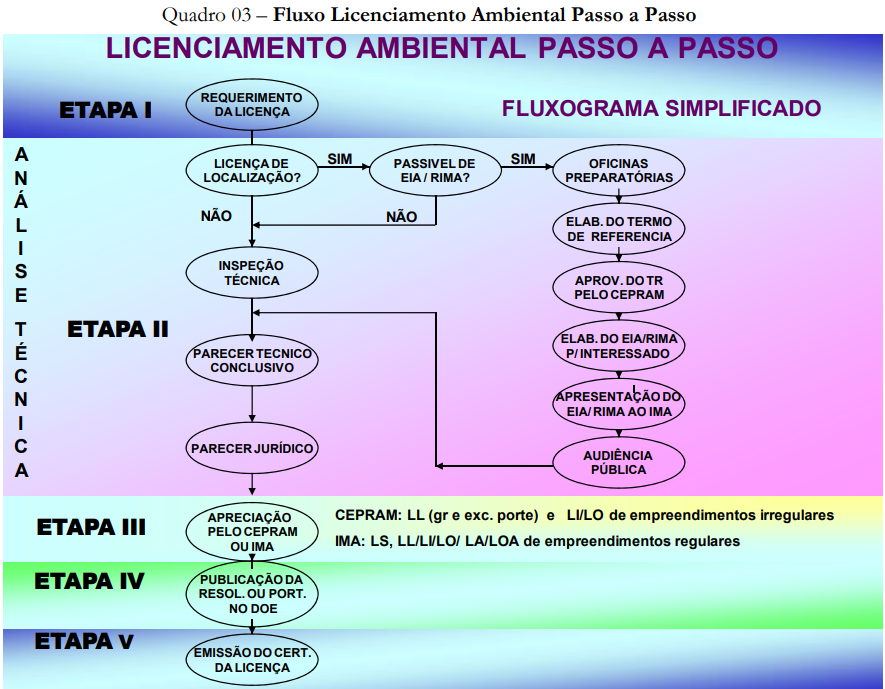 - Concluído o Parecer Técnico do IMA, este será encaminhado para a apreciação do Conselho Estadual de Meio Ambiente - CEPRAM, quando couber.