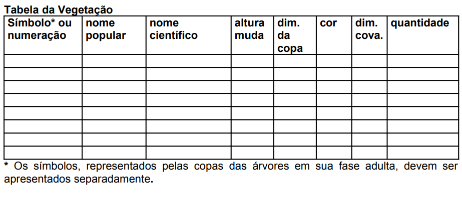 - Periodicamente as mudas mortas devem ser retiradas e substituídas dentro do prazo mínimo de um ano.