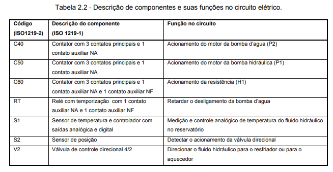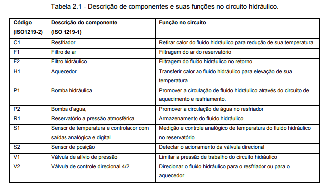 A tabela 2.1 complementa o modelo apresentado na figura 2.3 destacando a função a ser desempenhada por cada componente. Esta interligação de funções é concebida pelo projetista de modo a atender a função global que, no caso, é de controlar a temperatura do fluido que está no reservatório.