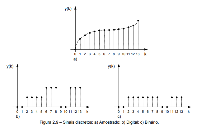 - Sinais digitais ou numéricos: são sinais discretos com amplitude discreta;
